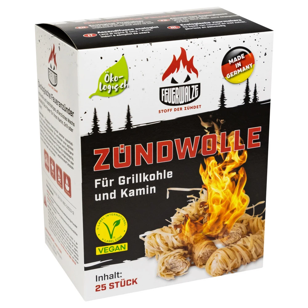 Mit diesem Grillanzünder steht dem Grillvergnügen nichts mehr im Weg. Die 25 Stück Feuerwalzen sind aus reinen Naturprodukten, mit pflanzlichem Wachs und lassen sich leicht anzünden. Es kommt zu keiner Ruß-Entwicklung und der Feueranzünder trocknet auch bei längerer Lagerung nicht aus. Sobald der Anzünder vollständig abgebrannt ist, kann das Grillgut aufgelegt werden.