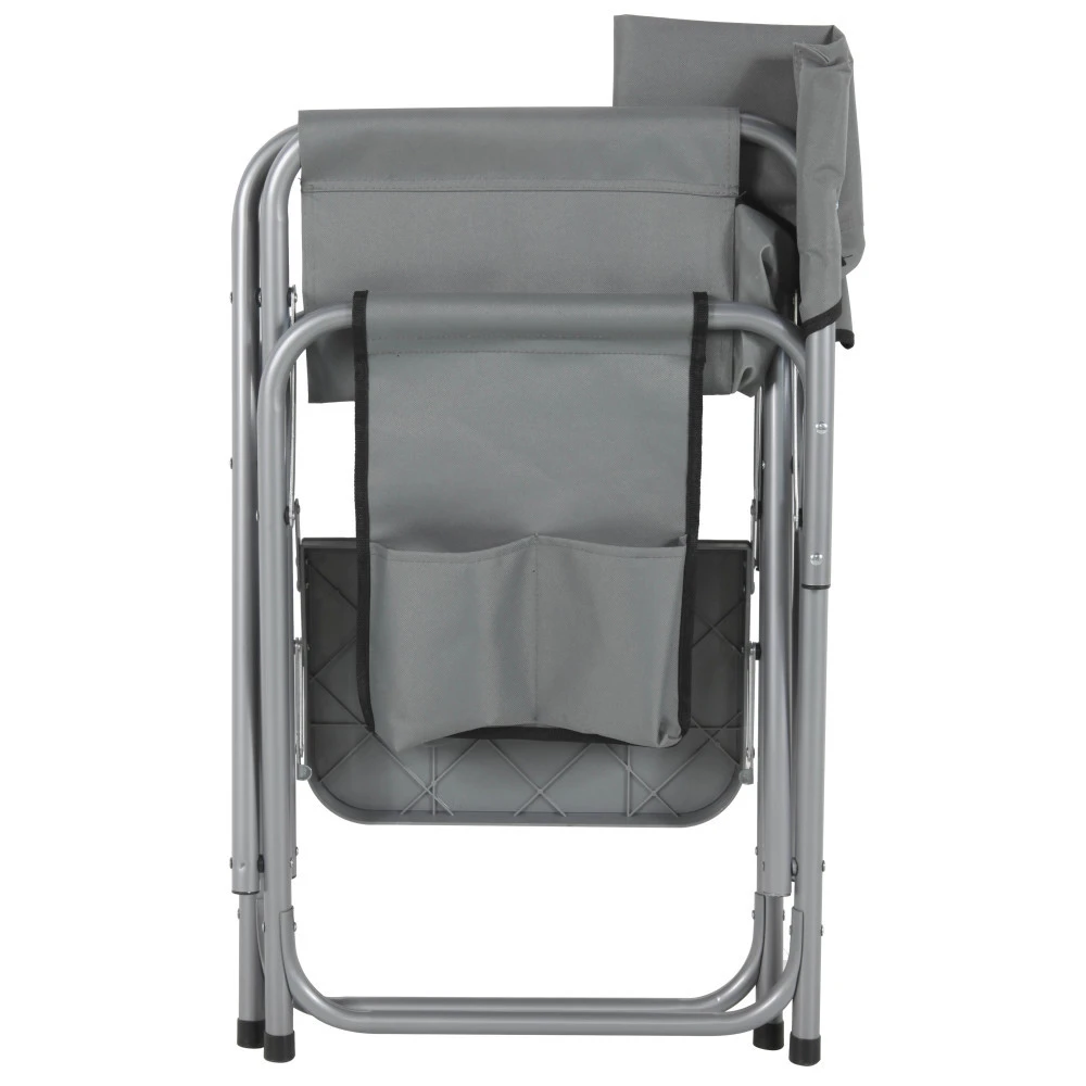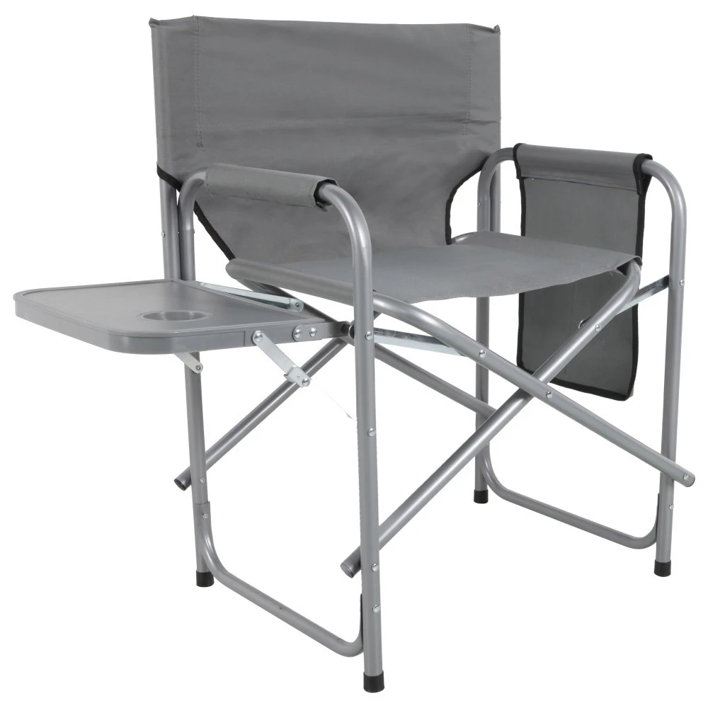 Der klappbare Campingstuhl mit pulverbeschichtetem Metallgestell bietet durch seine Armlehnen besonderen Komfort in deinem Garten, bei Ausflügen oder Camping. Sowohl die Sitzfläche als auch die die Rückenlehne des Faltstuhles ist mit einer PVC-beschichtetem, 600D Oxford-Stoffbespannung in Grau versehen. Darüber hinaus ist der Faltstuhl mit einem Seitentisch auf der rechten Seite und einer zweifachen Aufbewahrungstasche für Brillen, Zeitungen oder Getränke auf der linken Seite ausgestattet. Bei Nichtgebrauch kann der Klappstuhl platzsparend zusammengefaltet werden.