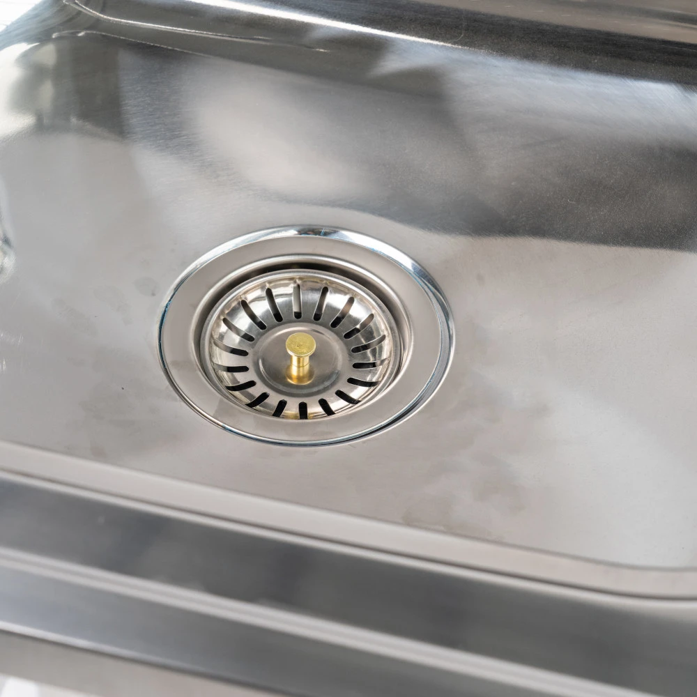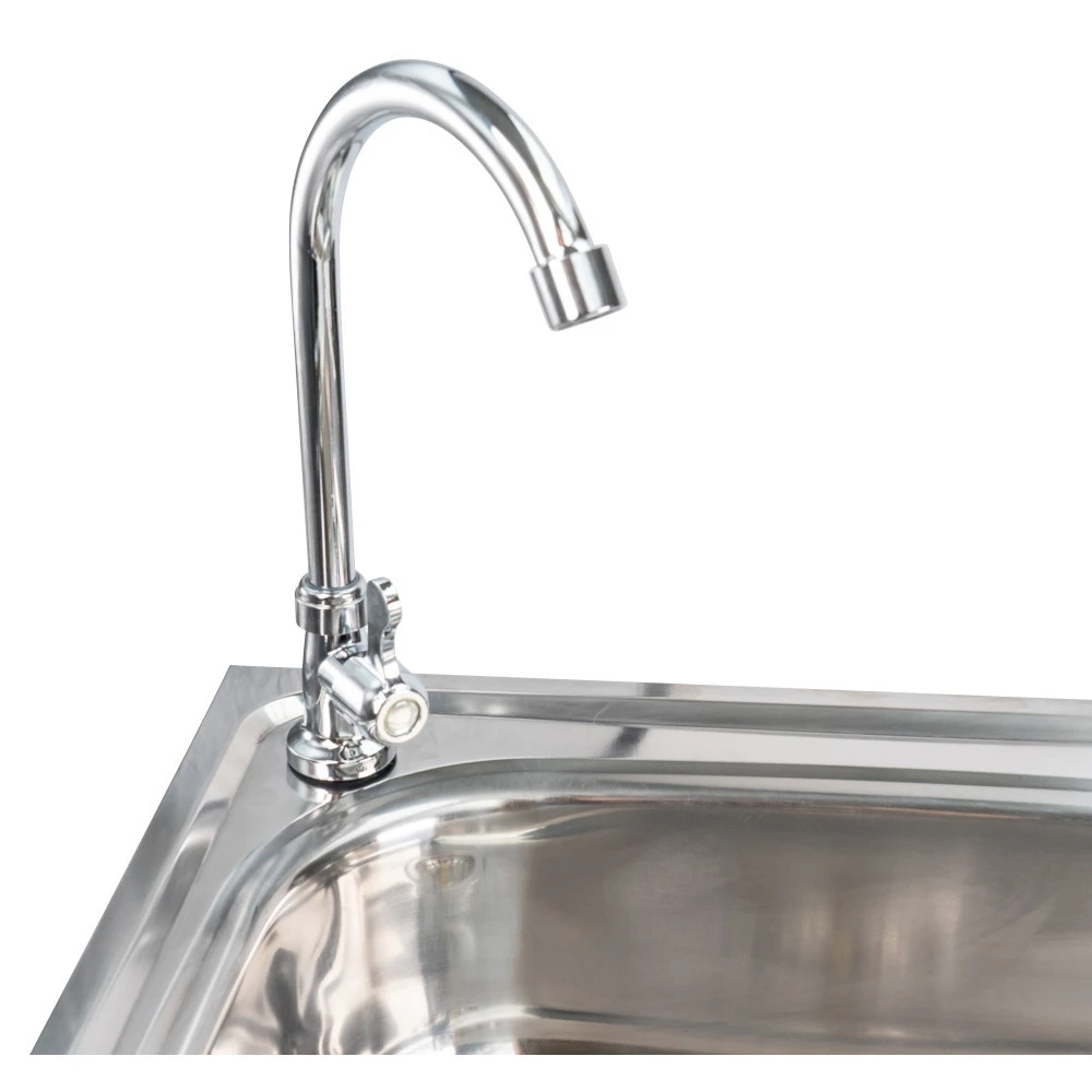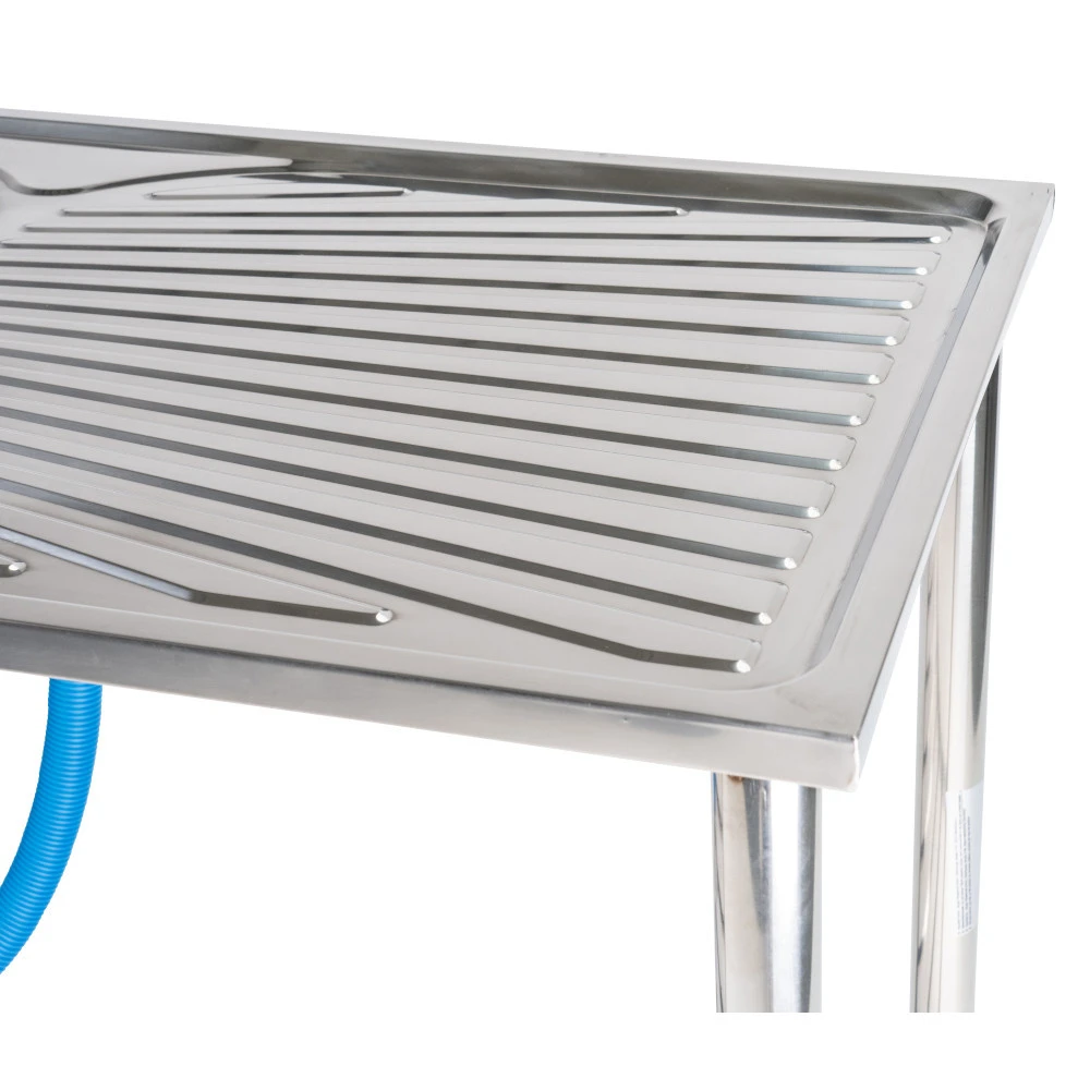Vielseitig einsetzbarer Waschtisch aus 18/10 Edelstahl für den Innen- und Außenbereich. Der Multifunktionswaschtisch mit Ablagefläche kann für viele Zwecke verwendet werden z.B. zur Reinigung von Garten- oder Grillgeräten im Vorzelt beim Camping, als Anglertisch oder zusätzliches Spülbecken im Waschraum. Einfach einen Wasserschlauch / Gartenschlauch an den integrierten Wasserhahn anschließen und schon hast du ein Spülbecken für diverse Anlässe. Auf der Arbeitsfläche können Vorbereitungen für Grillabende getroffen, Blumenkästen, -töpfe und -kübel bequem bepflanzt oder auch zu reinigenden Gartengeräten abgelegt werden. Seine Bodenfläche bietet zusätzlichen Stauraum für verschiedenste Utensilien. Durch die mitgelieferten Stellschrauben ist der Waschtisch and en Tischbeinen höhenverstellbar und kann auf die gewünschte Arbeitshöhe angepasst werden. Bei Nichtgebrauch lässt sich der Edelstahl-Waschtisch schnell und einfach abbauen und verstauen. Ein flexibler Abflusschlauch ist im Lieferumfang enthalten.