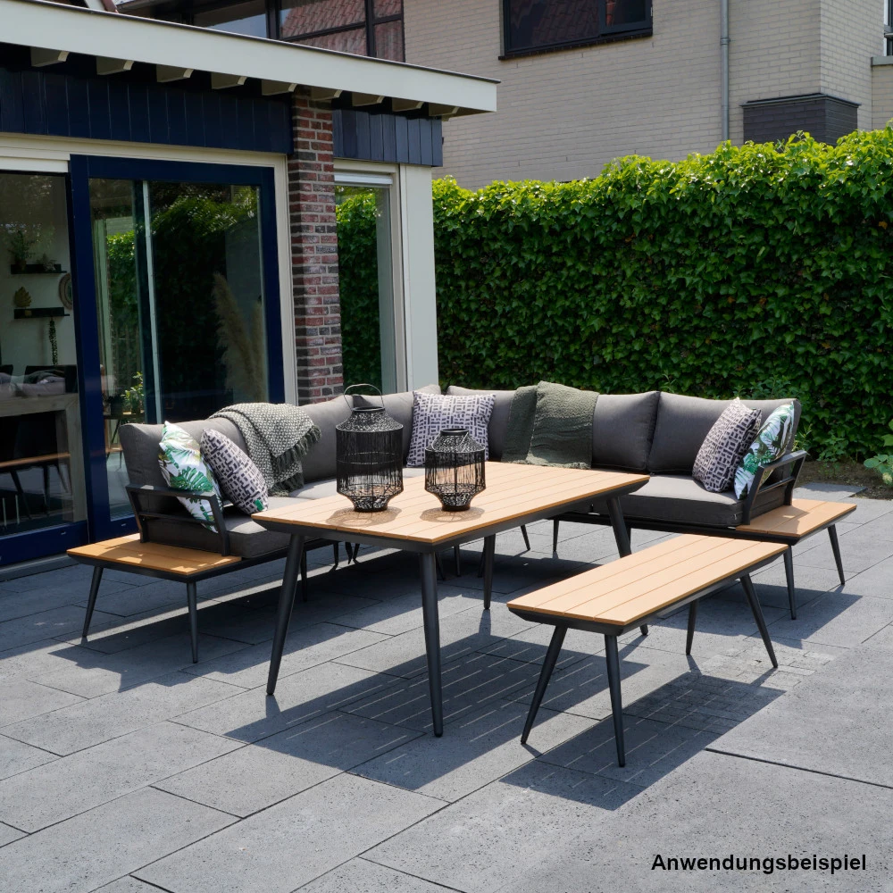 Eckbankgarnitur Dining Arezzo 5-teilig, 7-Sitzer mit Aluminiumgestell, Tisch und Sitzbank