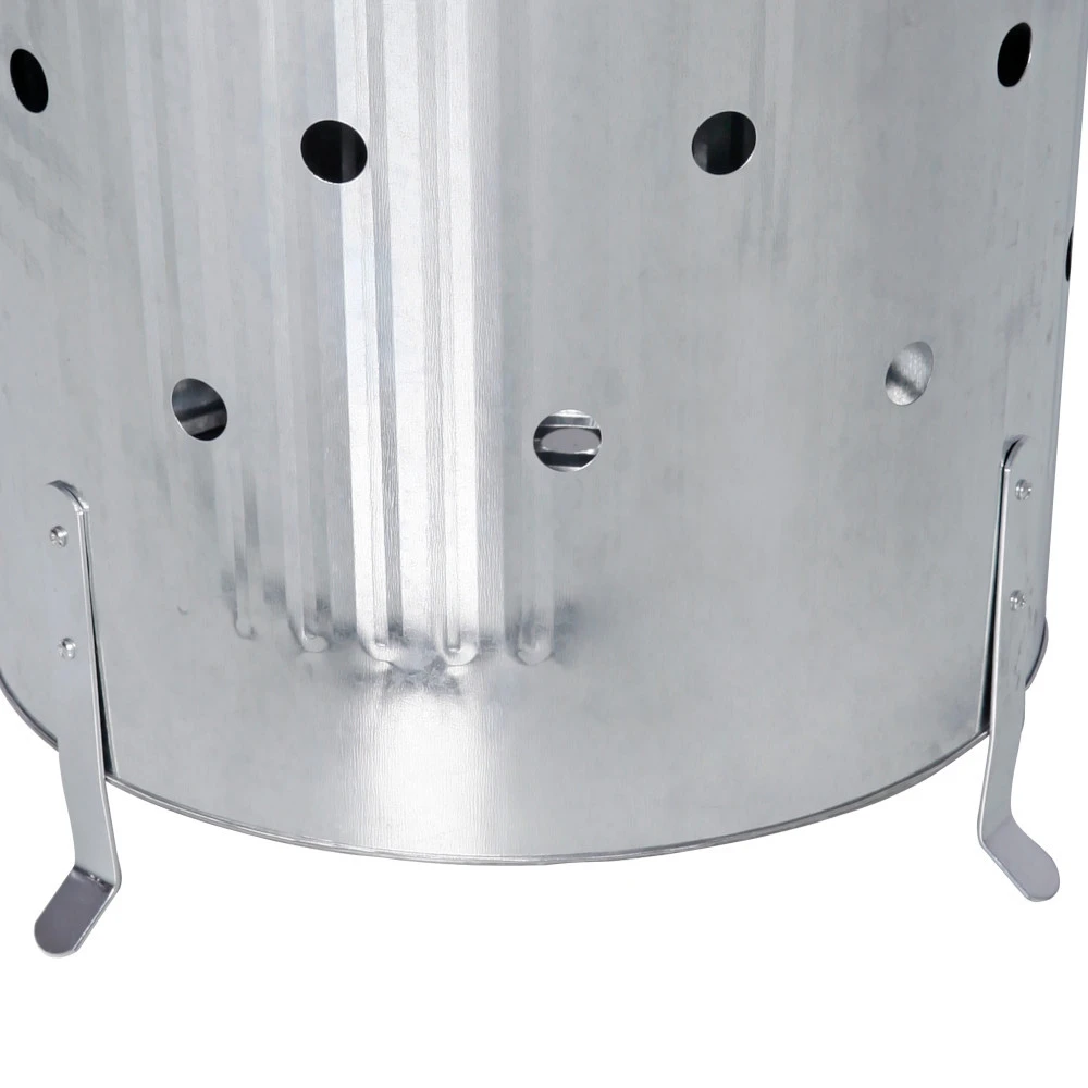 Die Feuertonne aus verzinktem Stahl ist ein zuverlässiger Helfer beim Verbrennen von Grünabfällen direkt vor Ort. Mit einem Fassungsvermögen von bis zu 75 Litern bietet die Tonne ausreichend Stauraum für Gartenabfälle wie Laub, Äste oder Grünschnitt. Seine Lüftungslöchern als auch der Kamin-Deckel sorgen für einen schnelleren Verbrennungsprozess der Grünabfällen. Für einen sicheren Stand sorgen die massiven Standbeine, während mit den Griffen den Transport des Verbrennungseimers erleichtert wird.