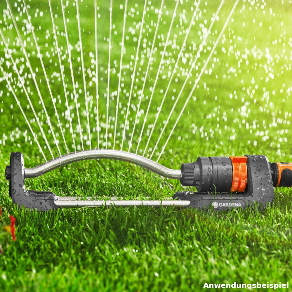 Der GARDENA Viereckregner Aqua S ist für die gleichmäßige Bewässerung von rechteckigen und quadratischen Rasenflächen von 90 bis 220 Quadratmetern geeignet. Der Regner hat eine stufenlos einstellbare Reichweite von 7 bis maximal 17 Metern und eine maximale Beregnungsbreite von 13 Metern. Ein innenliegender Metallfilter schützt vor dem Eindringen von Schmutz. Für die Reinigung verstopfter Düsen ist eine Reinigungsnadel direkt am Gerät angebracht und schnell zur Hand. Die aluminiumverstärkten Düsenrohre sind äußerst bruchsicher. Der Rasensprenger ist frost- und witterungsbeständig. 5 Jahre Garantie sichern die Markenqualität „Made in Germany“!