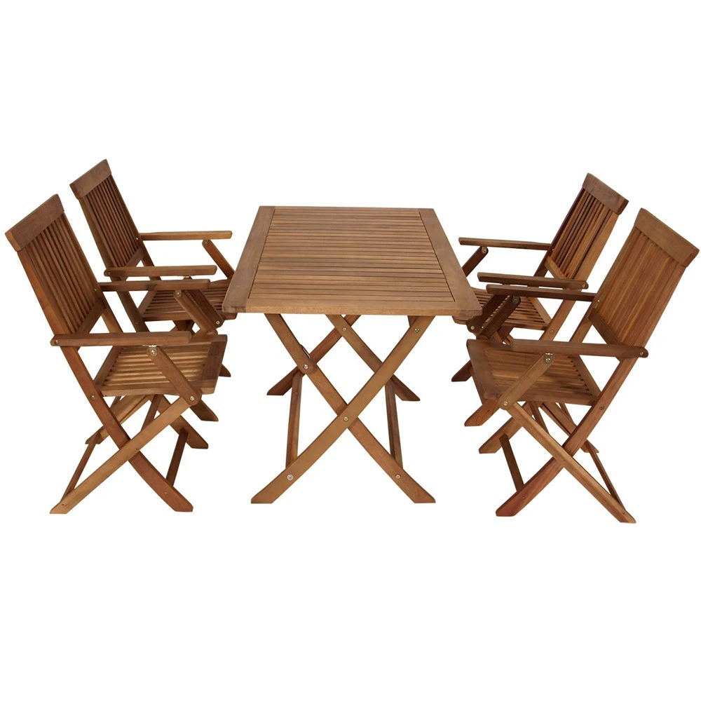 Die 5-teilige Sitzgarnitur Tobago besteht aus einem Tisch und 4 Klappsesseln aus geöltem Akazienholz. Die Gartengarnitur für Feiern, Grillabend oder einfach nur gemütlichen Zusammensitzen mit der Familie oder Freunden genau das Richtige. Das geölte Holz des Akazienbaums wurde nachhaltig und umweltschonend geerntet.