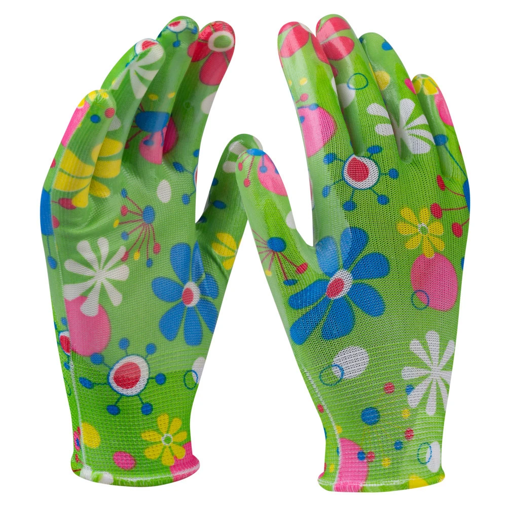 - Gartenhandschuhe Größe 8 mit Blumenmotiv in Grün
