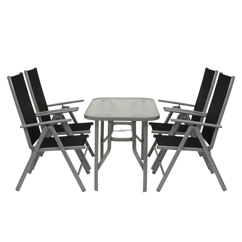 Gartenmöbel-Set 5-teilig, Aluminium und Textilene, Schwarz-Grau