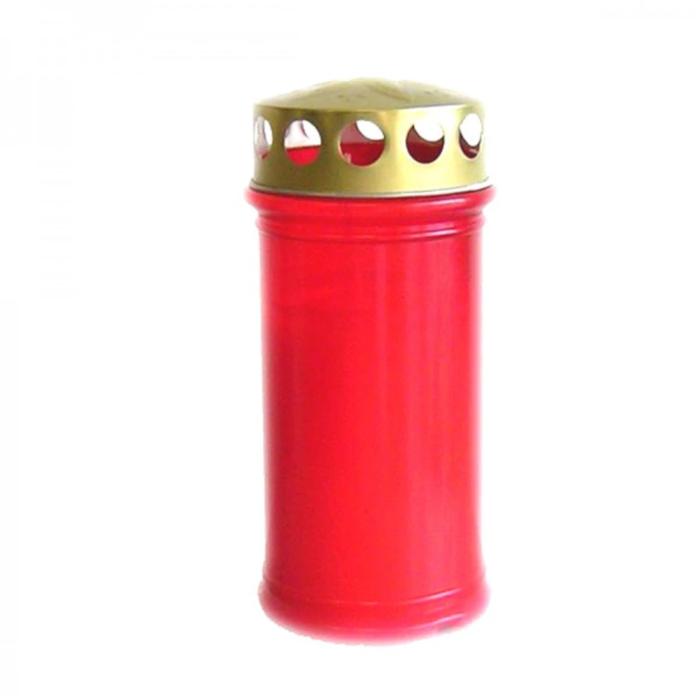 Grablicht Ø 7,5 x 17 cm 270 g aus rotem Kunststoff mit Golddeckel