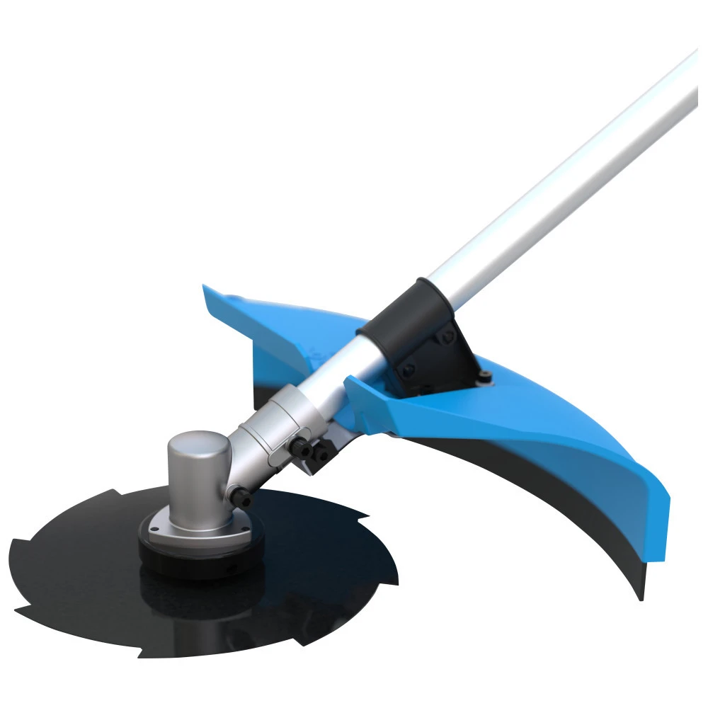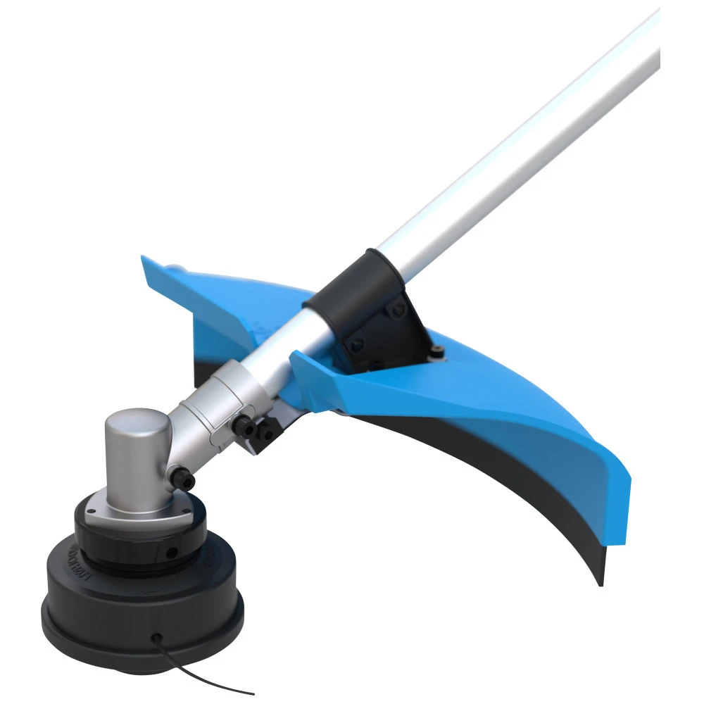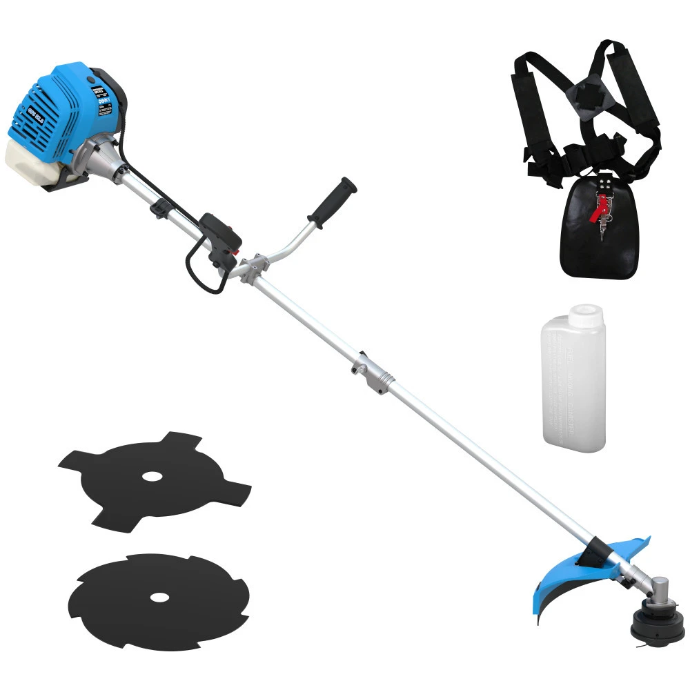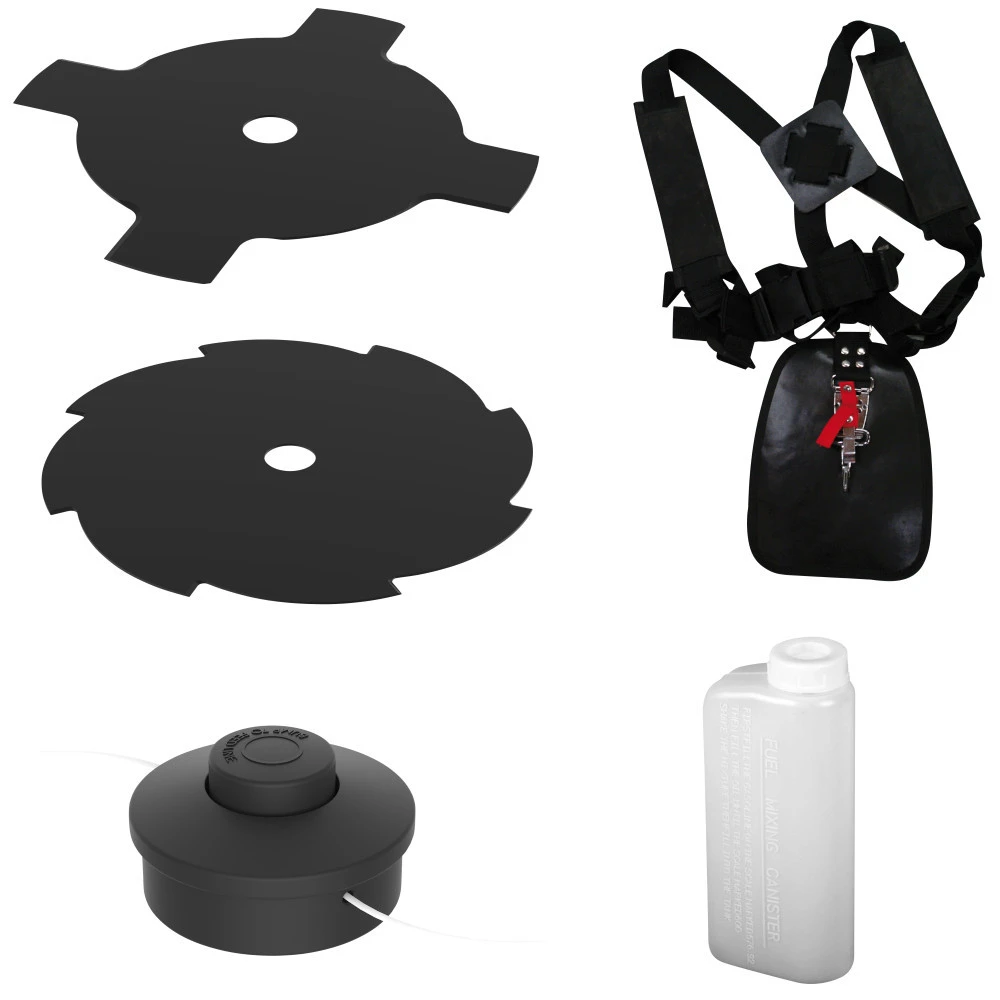 Zur Ausstattung der Motorsense gehören ein Wirbelblatt mit 8 Zähnen, ein Sternblatt mit 4 Zähnen, eine Fadenspule und eine starre Welle. Das komfortable Tragegurtsystem rundet den sehr guten Gesamteindruck ab.