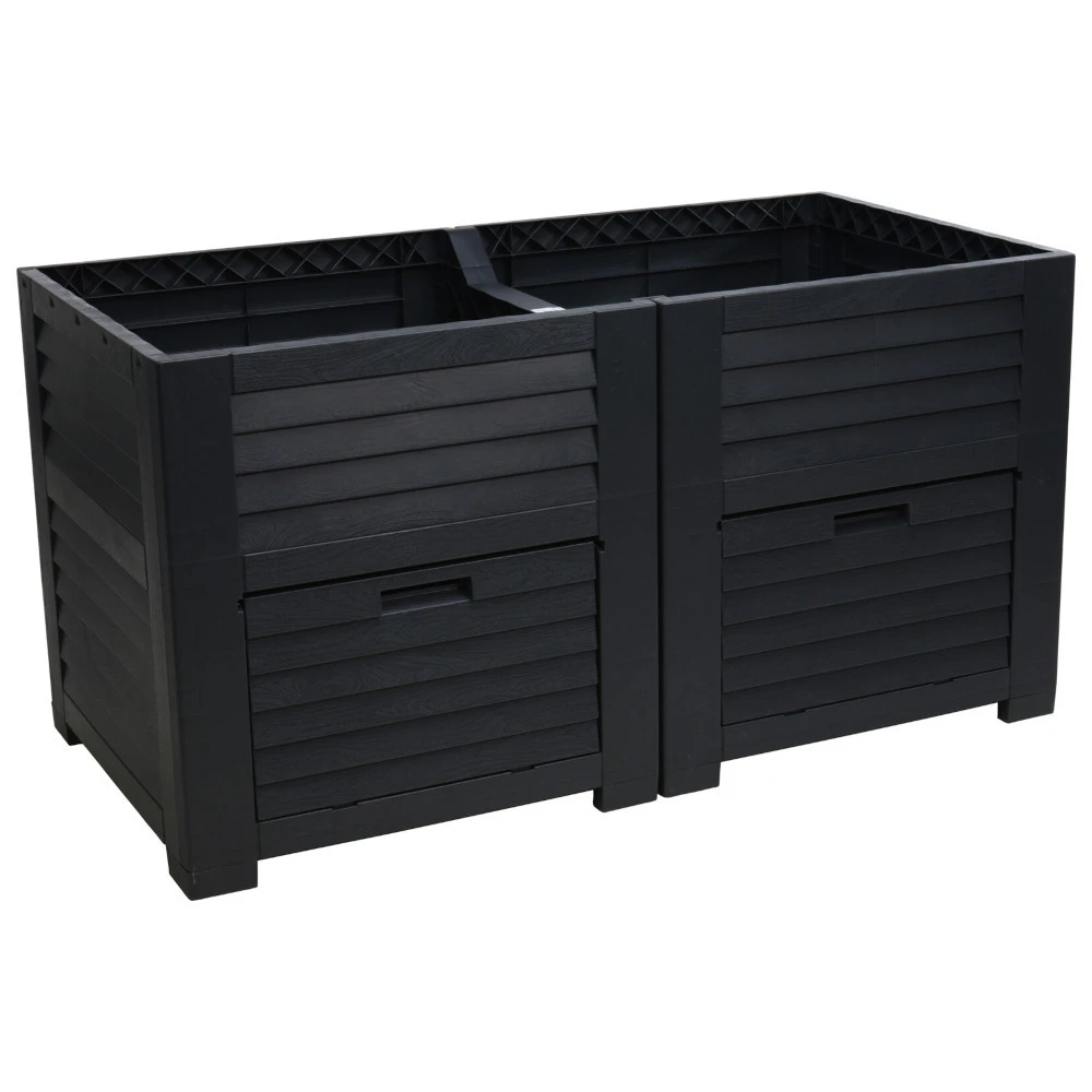 Hochbeet aus anthrazitem Kunststoff mit Aufbewahrung für Blumen- und Kräutergärten