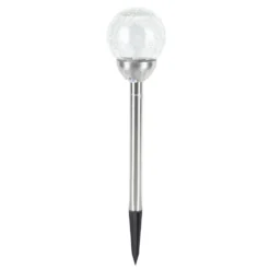 Die hübsche Solarleuchte aus Metall mit Farbwechsel sorgt für schöne Lichtakzente an deinen Gartenwegen, Terrasse oder Blumenkübeln. Du kannst die Solarkugel aus Echtglas auch als dekoratives Orientierungslicht nutzen. Schnell und einfach wird die Solarleuchte mit dem Erdspieß in den Boden gesteckt ohne Stromkabel zu verlegen und durch Solarzellen aufgeladen. Eine NIMH-200MAH Batterie ist im Lieferumfang enthalten.