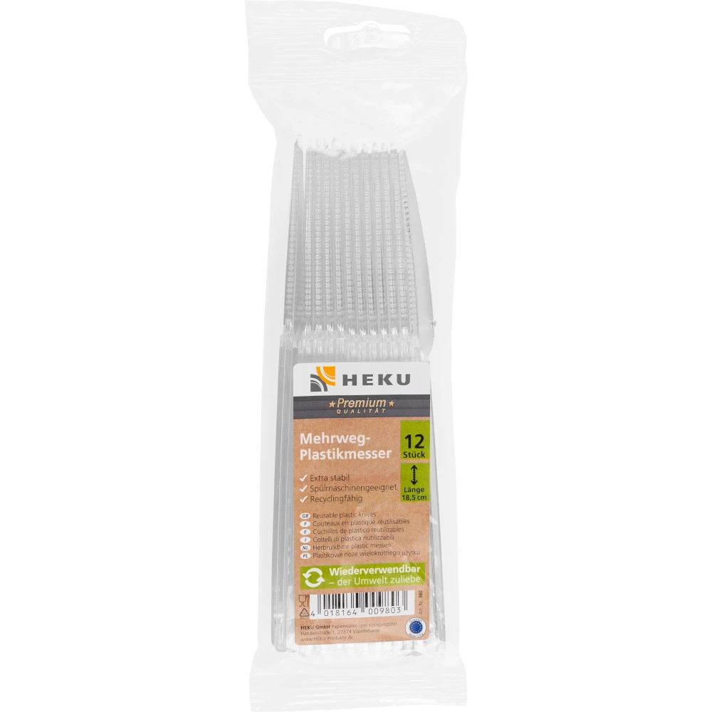 - 12 x Mehrweg-Messer aus transparentem Kunststoff 18,5 cm