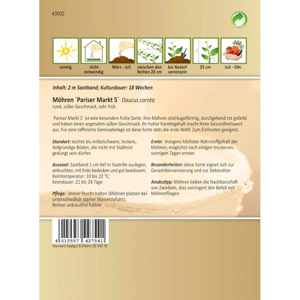 - 1 x Saatgut (2 m Saatband) Möhren Pariser Markt 5