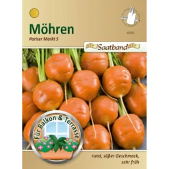 Saatgut Möhren Pariser Markt 5 ist eine besonders frühe Sorte. Ihre Möhren sind kugelförmig, durchgehend rot gefärbt und haben einen angenehm süßen Geschmack. Ihr hoher Karotingehalt macht ihren Gesundheitswert aus. Für eine raffinierte Gemüsebelage ist diese Sorte stets die erste Wahl. Zum Einfrosten geeignet.